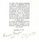 Tirage à 101 exemplaires, tous sur chiffon d'Auvergne à la main du Moulin Richard de bas, signés par l'auteur et l'artiste, celui-ci le n°63.