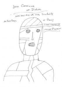 Envois autographes signés de l'illustrateur et de l'auteur, accompagnés d'un dessin original à l'encre de Max Papart, à pleine page.
