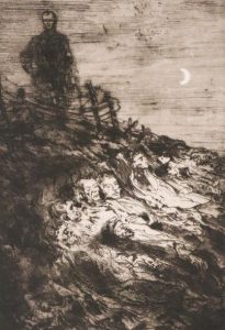 La Vesioun de l'Uba. Ais-de-Prouvenço, Soucieta de la Revisto Le Feu, 1920. In-4, broché. Poème provençal illustré de trois gravures d'Henry de Groux. L'auteur imagine que des spectres, issus d'un charnier, et morts dans les tranchées de Première Guerre mondiale, parlent de leurs sacrifices.