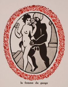 Le Kama-soutra. Penjab [Paris], Pour les amis bibliophiles [Éditions Cupidon], [1924]. In-4, en feuilles. Ouvrage illustré de 30 dessins érotiques reproduits en photogravure dans un encadrement de roses tiré en rouge, par Lucien Laforge.