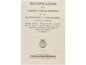 1795 ca. (NAVEGACION). SANS, MANUEL: RECOPILACION DE VARIAS TABLAS PROPIAS A LA NAVEGACION Y ASTRONOMIA DISPUESTAS Y ORDENADAS POR... Barcelona: Juan Francisco Piferrer, s.a. 4°. IX + 159 p., 1 lam. Enc. en plena piel.