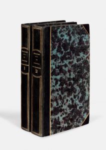 La Femme supérieure. La Maison Nucingen, La Torpille. Paris, Werdet, 1838. 2 volumes in-8, demi-veau bleu nuit avec coins, filet doré, dos lisse orné en long d'un cadre au double filet doré, tranches marbrées (Reliure de l'époque). Édition originale.