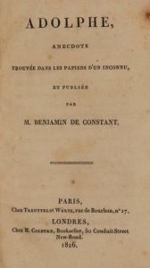 CONSTANT (Benjamin). Adolphe. Anecdote trouvée dans les papiers d'un inconnu. Paris, Treuttel et Würtz ; Londres, H. …