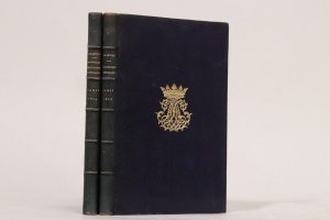 Méditations poétiques. Paris, Librairie grecque-latine-allemande, 1820. – Nouvelles méditations poétiques. Paris, Urbain Canel, Audin, 1823. 2 volumes in-8, maroquin bleu nuit, chiffre couronné doré au centre, dentelle intérieure, tranches dorées sur marbrure (R. Petit). Seconde édition des Méditations poétiques et édition originale des Nouvelles méditations poétiques.