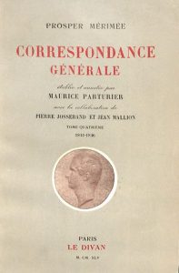 MERIMÉE (Prosper). Ensemble 22 volumes de mémoires et de correspondance. Lettres à une inconnue. Paris, Michel …