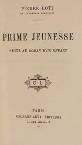 Exemplaire enrichi d'une lettre autographe signée de Pierre Loti [à la femme de lettres Jane Catulle-Mendès]. S.l., 13 février 1920 : « Mon amie, je n'ai rien lu d'exquis, à tous les points de vue, comme ce que vous venez d'écrire sur mon livre de jeunesse. Je vous en remercie de tout cœur et vous embrasse de même si vous permettez. Cela rapproche nos deux âmes – et puis comme c'est joli et quelles images vous avez trouvées ! Comme cela laisse loin tant d'autres articles aimables, des uns ou des autres ! Quand je viendrai à Paris, dites-vous... Mais c'est que je compte bien n'y jamais revenir. C'est à Hendaye que nous nous retrouverons, quand vous serez à St-Jean-de-Luz... » (1 p. 1/4 in-12).