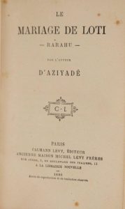 Le Mariage de Loti. Rarahu. Paris, Calmann Lévy, 1880. In-18, demi-maroquin bleu avec coins, filet doré, tête dorée, couverture et dos. Édition originale.