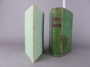 plein papier vert. État correct, petits défauts d’usage. Titre manuscrit à l’encre au dos. Collationné et complet : 8 pages, infime trace de vers en marge basse de 4 feuillets. Rare impression de Loudun, début XVIIème. On joint 1 volume du XVIIIème contenant 5 titres : 1 - examen impartial des immunités ecclésiastiques contenant les maximes du droit public, et les faits historiques qui y ont rapport. Sans auteur, imprimé à Londres, 1751. 2 - les très-humbles remontrances du parlement présentées au Roy. Sans auteur et sans lieu, 1751. 3 - lettre d’un théologien sur l’exaction des certificats de confession pour aminister le saint viatique, sans auteur et sans lieu, 1751.4 - mémoire sur le refus des sacrements à la mort. Sans auteur, sans lieu, 1750 5 - Critique du ballet moral dansé au collège des jésuites de Rouen, sans auteur et sans lieu, 1751. 1 volume in-12 en plein vélin rigide vert. Pièce de titre en basane marron rapportée au dos, corps d’ouvrage propre, quelques taches sur le vélin. Soit 2 volumes :