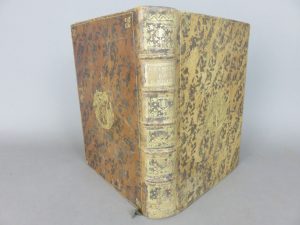 dorées en écoinçons. Cuir un peu sec, quelques épidermures sur le second plat. Corps d’ouvrage et papier très propre.