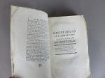 1770. 1 volume in-8° broché, couverture de papier à la cuve moderne à l’imitation de ceux du XVIIIème, pièce de titre manuscrite. Page de titre salie, mouillure marginale sur les 40 derniers feuillets. Belle impression volume à toutes marges non rognées. VIII pp.- 223 pp.