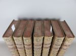 maroquin rouge, tranches rouges. Ensemble complet, reliure solide avec défauts d’usage en coins et coiffes ; exemplaire correct vérifié mais non collationné. Tome 5, mouillure ancienne sur 5 à 10 cm carré entrainant des manques de papier et donc de texte au centre des pages 91 à 164 (4 pages par feuillet). Vendu en l’état.