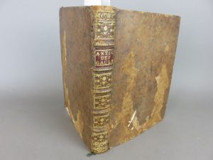 épidermures sur les plats avec des manques de cuir, dos à nerfs orné de fleurons dorés, pièce de titre en maroquin rouge. XXIV pp. dont faux-titre et titre – 379 pp. privilège. Un double du feuillet 63 se trouve in-fine entre le privilège et la table. Exemplaire en édition originale, collationné et bien complet des 29 planches dépliantes pour la plupart, cahiers bien propres. Ouvrage contenant un chapitre important sur les recherches dans le pays de Vannes jusqu’à Belle-Île-en-mer. Exemplaire avec l’ex-libris gravé de l’auteur sur le contreplat, portant sa devise latine, ses armes et son nom.