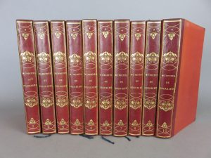 à coins, dos lisses avec décor et titre dorés. Rousseurs éparses sur l’ensemble des volumes, 1 feuillet non massicoté. Jolie série bien reliée avec goût. Mémoires importantes sur cette période.