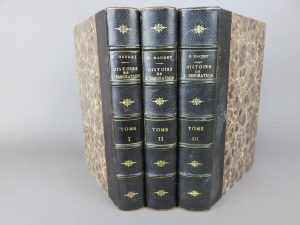 Daudet Ernest Histoire de l’émigration pendant la Révolution française. Paris, Hachette, 1905/1907. 3 volumes in-8°, reliure d’époque en demi-chagrin noir, dos à nerfs avec auteur, titre et tomaison dorés. Bon exemplaire.