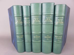 conservées. 2 volumes titrés : histoire politique et religieuse. Les deux suivants : La Chouannerie. Exemplaire propre. On joint dans une reliure identique au même format : Mémoires inédits de Bertrand Poirier de Beauvais, commandant général de l’artillerie des armées de la Vendée. Paris, chez Plon, 1893. Couverture conservée. Soit 5 volumes :