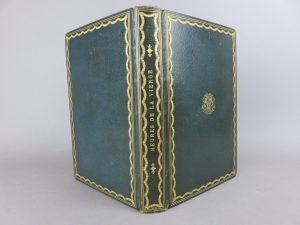 Anonyme Les heures de la très sainte vierge. Boussod Valadon à Asnières-sur-seine 1895. 1 volume in-8°, reliure en plein maroquin bleu vert, filets et guirlandes dorés en encadrement sur les plats, monogramme doré au centre du premier plat. Dos...