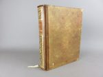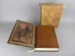 le même esprit avec auteur et titre dorés. Filet doré sur les contreplats. Cuivre original collé sur le premier contreplat ; tête dorée. Reliure signée R. Henry Nancy. Le cuivre est décollé, un mors fendu sur 3 cm, dos un peu insolé. Exemplaire sous étui bordé de veau marron, épidermure sur cette bordure. Exemplaire complet de la suite intercalée dans le volume ainsi que du cuivre et du dessin original en noir, signé. Rares piqures, pas de rousseur, défauts d’usage.