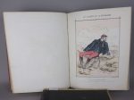 modeste avec défauts d’usage. Ce volume contient 3 albums de Draner. Le premier : Souvenirs du siège de Paris, 31 lithographies couleur plus le titre. Suivi de : Paris assiégé, 31 lithographies couleur plus le titre et enfin : Les soldats de la république, 31 lithographies couleur plus le titre. Intérieur assez propre, rares piqûres. Nous joignons 2 numéros de la revue intitulée : Les coiffures de l’armée française, n° 31 de 1911 et le n° 2 de 1909. Nombreux dessins couleur dans le texte ainsi que 21 planches couleur de casques, bonnets et shakos pour chaque numéro, soit 42 planches. Les 2 numéros sont ré-emboîtés dans une chemise rigide d’époque étroite pour les revues. Intérieur propre, rares rousseurs.