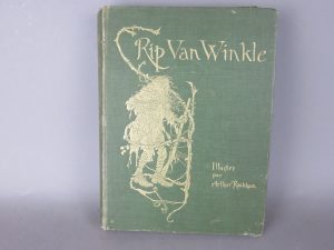 Irving Washington - Rackham Arthur Rip Van Winkle. Paris, Hachette et Cie, 1906. 1 volume in-4°, reliure en pleine percaline verte de l’éditeur. Décors et titre dorés sur le premier plat, dos lisses avec auteur et titre dorés. Percaline...