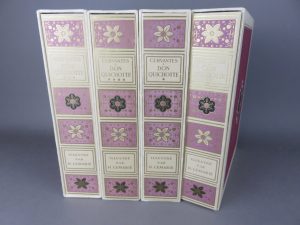 Lemarié Henry - Cervantès (Michel de) L’ingénieux Hidalgo, Don Quichotte de la Manche. Paris, éditions d’art les heures claires, 1960. 4 volumes en feuilles in-4°, couvertures rempliées, chemises et étui de l’éditeur. Dos des chemises...