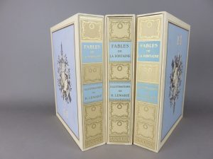 Lemarié Henry - La Fontaine (Jean de) Fables. Paris, les éditions d’Art les Heures Claires, 1962/1966. 3 volumes in-4° en feuilles sous chemises et étuis de l’éditeur, couvertures rempliées. 3 ou 4 feuillets seulement, sur l’ensemble des...