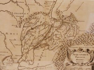 Histoire des Séquanois et de la province séquanoise, des Bourguignons et du premier royaume de Bourgogne, de l'église de Besançon jusque dans le sixième siècle, et des abbayes nobles du comté de Bourgogne. – Histoire du second royaume de Bourgogne. Dijon, De Fay, 1735-1737. – Mémoire pour servir à l'histoire du comté de Bourgogne. Besançon, Charmet, 1740. 3 volumes in-4, veau moucheté (t. I-II) ou basane marbrée (t. III), dos orné, tranches rouges (Reliures de l'époque). Édition originale de cette excellente histoire du comté de Bourgogne, complète des trois tomes parus séparément à Dijon puis à Besançon.