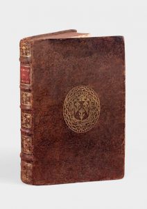 Explication de la genealogie du tres-invincible, et tres-puissant monarque Henry IIIIe de ce nom, 65e roy de France, ou (selon aucuns) 62e & IIIe de ce nom, 39e roy de Navarre. Le tout tire des histoires tresapprouvees, tant latines, que françoises, italiennes, espagnoles, & portugaises. Paris, Gilles Beys, 1595. In-4, veau, dos à nerfs orné, fer doré sur les plats, tranches rouges (Reliure du XVIIIe siècle). Première édition française de ce très rare et monumental ouvrage sur les origines d'Henri IV, traduit du latin par C. de Héris. L'édition originale latine est de 1582.