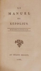 Le Manuel de Xéfolius. Au Grand Orient [Paris], s.n., 1788. In-8, demi-veau bleu marine, dos richement orné, tranches mouchetées (Reliure du XIXe siècle). Édition originale rarissime, n'ayant été tirée qu'à 100 exemplaires réservés aux amis de l'auteur.