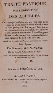 Traité-pratique sur l'éducation des abeilles. Imprimé à Vendôme en 1806 ; Paris, Causette, 1816. In-8, basane racinée, chaînette dorée, dos lisse orné, tranches marbrées (Reliure de l'époque). Édition originale de 1806 remise en vente sous un titre renouvelé.