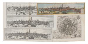 sur Malines en perspective aérienne, du même folio. 115 x 475 mm. Et : – Idem que la précédente, coloriée. 115 x 475 mm Et : – Un plan gravé de Malines de 'Descrittione di tutti i Paesi Bassi' de Giucciardini, publié par Willem Blaeu, ca. 1612. 230 x 310 mm Tot. : 4 ex.245 x 480 mm