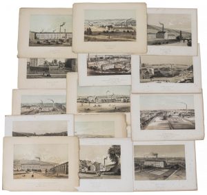 ■ (Industrieel Erfgoed) — Een verzameling van 16 getinte litho's door Toovey en Canelle uit 'La Belgique industrielle' (ca. 1850–55), gedrukt door Simoneau & Toovey en uitgegeven door Géruzet, Brussel.