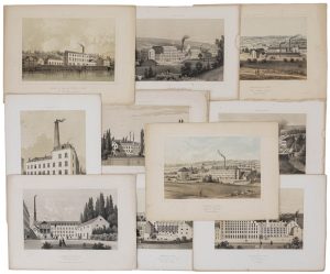 ■ (Industrieel erfgoed) — Een verzameling van 10 getinte litho's door Toovey en Vanderhecht uit 'La Belgique industrielle' (ca. 1850–55), gedrukt door Simoneau & Toovey en uitgegeven door Géruzet, Brussel.
