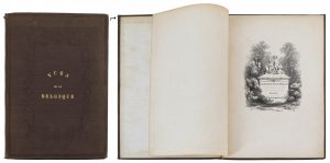 ■ (BRUXELLES) — Collection de vues de Bruxelles et d'autres villes de la Belgique. Paris, P.J. Daems éditeur, s.d. Grand in–4°. Complet des 15 lithographies teintées de vues d'intérieur et extérieures de Bruxelles, Anvers, Malines, Liège, etc.