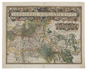■ (LUIK) — Een vroeg 17de–eeuwse gegraveerde en ingekleurde kaart door Abraham Ortelius van het bisdom Luik, getiteld 'Leodiensis Dioecesis Typus', uitgegeven in de Italiaanse uitgave van 'Theatrum orbis terrarum' door Christoffel Plantijn, 1612.