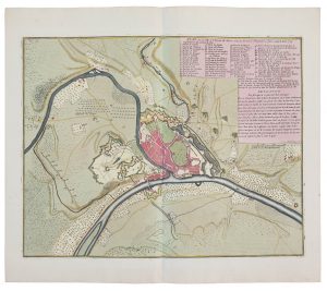 ■ (NAMUR) — An ealry–18th century engraved and coloured map of Namur by Jacques Harrewijn, titled 'Plan de la ville et château de Namur', dated 1709. 445 x 565 mm (545 x 630 mm)