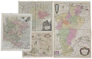 carte coloriée des environs de Chartres, titrée 'Partie Septentrionale de l'Evesche de Chartres', provenant de 'Atlas Nouveau, contenant toutes les parties du monde', Amsterdam, Covens & Mortier, vers 1695. 930 x 615 mm – 3. Une carte partiellement coloriée de Tyrol, titrée 'Principale dignitate gaudens comitat Tirolis' par Matthias Seutter, vers 1740. 510 x 580 mm – 4. Une carte coloriée 'Erster und gröster Theil des gantzen Hochlobl. Franckischen Craisses', par Johann–Baptist Homann, vers 1720. 595 x 495 mm Tot. : 4 ex.