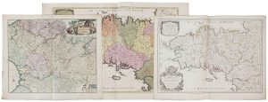 l'Estendue des Receptes de la Generalite de Nantes'. Puis publiée également à Amsterdam, par Covens & Mortier en 1710. — En très bonne condition. ─ On joint : – Une carte de la Bretagne coloriée et coloriée aux limites du début du XVIIIe siècle par Hubert Jaillot. 470 x 655 mm Et : – Une carte du comté d'Artois colorée de la fin du XVIIe siècle, publiée par Frederick De Wit, ca. 1680. 460 x 540 mm Tot. : 3 ex. 540 x 785 mm