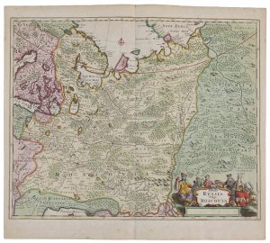 ■ (RUSLAND) — Een laat 17de–eeuwse gegraveerde en ingekleurde kaart van Rusland door Frederik De Wit, getiteld 'Tabula Russia vulgo Moscovia', 1680.