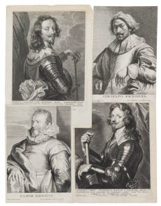 ANTONY VAN DYCK (1599–1641) — (d'après) — Un lot de quatre portraits gravés d'après Van Dyck, milieu du 17ième siècle, dont un avec annotation mss datée 'P.Mariette 1669'.