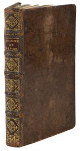 (IVRESSE) Albert–Henri de Sallengre, — L'éloge de l'yvresse. La Haye, Chez Pierre Gosse, 1715. Pet. in–8°. — 1 blanco, frontispice gravé, page de titre, 216 pp.num., (2), 1 blanco. — Rel. orig. en plein veau brun moucheté, dos à nerfs...