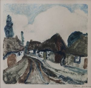 FLORIS JESPERS (1889–1965) — Maisons au bord de la route. — Monotype. — Signée à l'encre brune. — Encadrée. — 400 x 425 mm (720 x 730 mm)