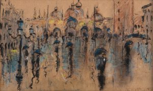 JEAN–FRANCOIS RAFFAELLI (1850–1924) (à attribuer à) — Saint Marc, Venise. — Fusain, crayon de couleurs et rehauts de gouache. Signé. — Encadré. — 107 x 180 mm (390 x 500 mm)