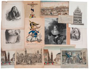 ■ (DECORATIVE GRAPHICS) —A varied lot of 19th–century lithographs and caricature sheets including 'Ommeganck van Lier', 'La femme ambitieuse veut etre maîtresse de la culotte', optical prints of Ghent, etc.
