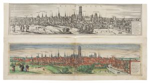 (MALINES) — Une vue sur Malines en perspective aérienne, gravée et coloriée, de la fin du XVIe siècle, de 'Civitates Orbis Terrarum, Liber Primus' de Braun & Hogenberg, 1599. — En très bon état. ─ On joint : – Exemplaire identique, pas...