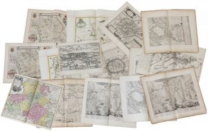 ■ (FRENCH FLANDERS / NORTHERN FRANCE) — A collection of 17th–century topography including engraved maps of Douay, Sint–Winoxbergen, Théonville, Damvillers, Quesnoy, Tournai (2 colored maps), Dinant, Hainaut, Artois and Kamerijk. Big format. Tot . : 15 ex