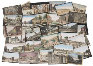 ■ (OPTICAPRENTEN) — Een omvangrijke verzameling van 45 midden tot laat 18de–eeuwse opticaprenten met zichten te Rome, Livorno, Parijs, Wenen (door Probst), Luik, Lissabon en Lyon (beide in vogelperspectief), de Beurs in Londen, Den Haag ('Vue de la Maison des Orphelins proche a la spuy' door Riedel), etc.