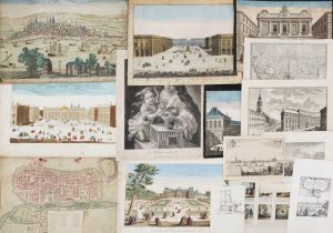■ A varied lot of 18th century topographical prints including five optics prints, a map of Reims, a map of the 17 Provinces, views of Bordeaux, Veurne and Poperinge.