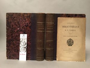 [Yemeniz]. Catalogue de la bibliothèque de M. N. Yemeniz... P., 1867, 2 vol. in-4, demi-chagrin. 3954 notices. Liste des prix jointe (un fascicule in-8 br.). Un des 50 exemplaires sur vergé de Hollande, grand de marges.