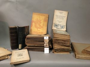 Un carton de catalogues de ventes de livres, formats variés, brochés, dont bibliothèques Paul Bonet, Paul Lacombe, Ch.-Ed. Haviland, Claretie, Firmin-Didot, Gabriel Thomas.