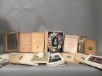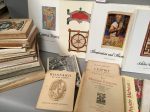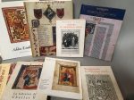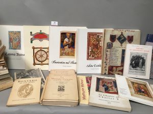 Un carton de catalogues d'expositions relatives au livre (auteurs, éditions, manuscrits etc.), et catalogues de libraires dont Tenschert, Sam Fogg.